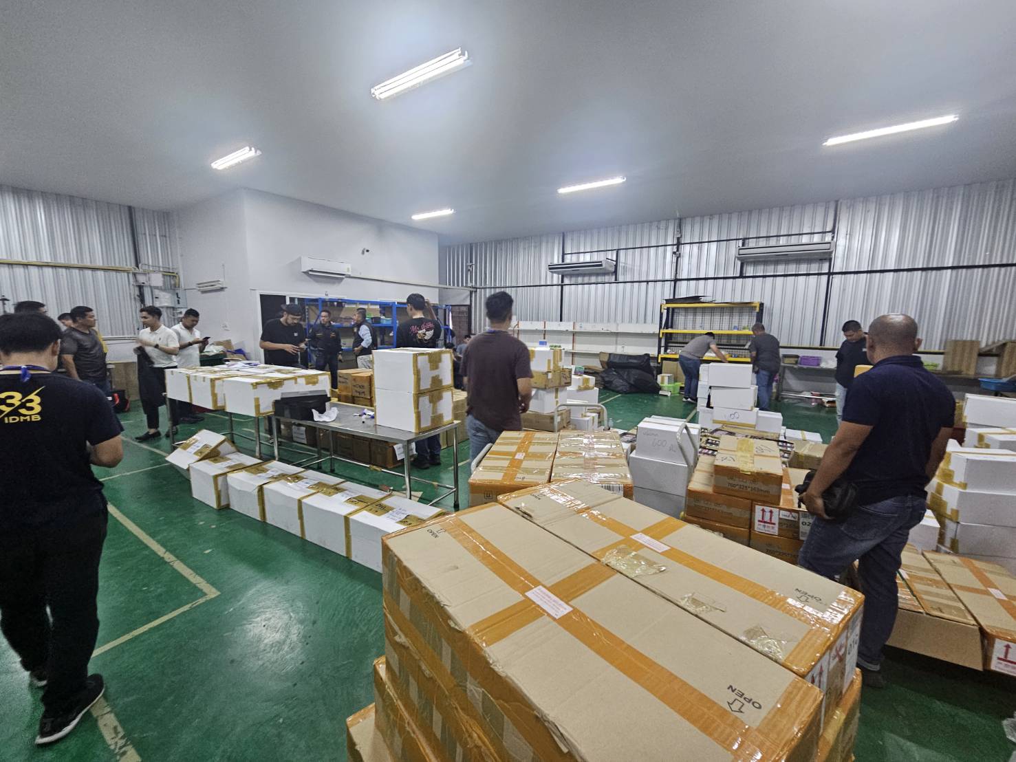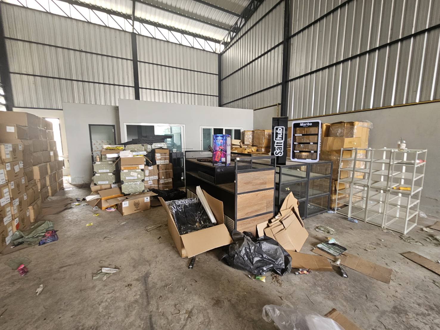 จากนั้นเจ้าหน้าที่ตำรวจจึงได้นำหมายค้นไปทำการตรวจค้นจุดที่2 อาคารเลขที่ 12/7 ม.5 ต.ละหาร อ.บางบัวทอง จ.นนทบุรี ผลการตรวจค้นพบ 5.บุหรี่ไฟฟ้าพร้อมสูบ จำนวน 10,000 ชิ้น 6.หัวน้ำยาบุหรี่ไฟฟ้า จำนวน 24,000 ชิ้น ,7.ขวดน้ำยาบุหรี่ไฟฟ้า จำนวน 5,500 ขวด ,8.DVR หรือNVR กล้องวงจรปิด จำนวน 1 เครื่อง ,9.อุปกรณ์สำหรับบรรจุหีบห่อเพื่อจำหน่าย ได้แก่กระดาษ เทปกาว ปากกา จำนวน 1 ชุด