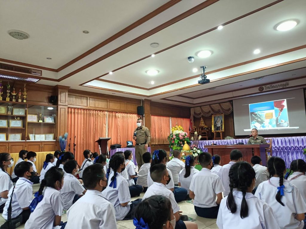 ว.4 อบรมให้ความรู้ด้านยาเสพติดตามโครงการ “การศึกษาเพื่อต่อต้านการใช้ยาเสพติดในเด็กและวิธีป้องกันตนเองไม่ให้เป็นเหยื่อการล่วงละเมิดทางเพศต่อเด็กนักเรียน” ชั้น ป.5 ดังนี้