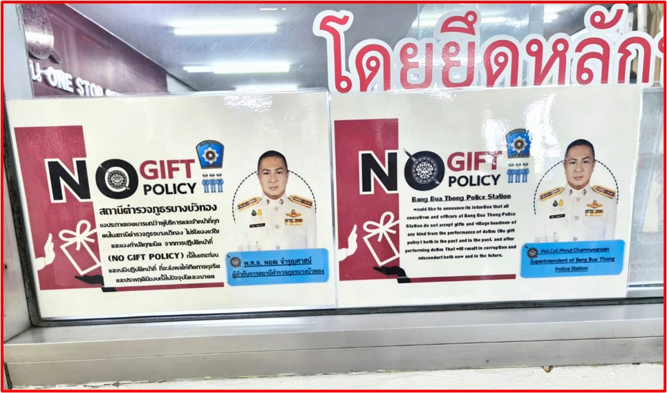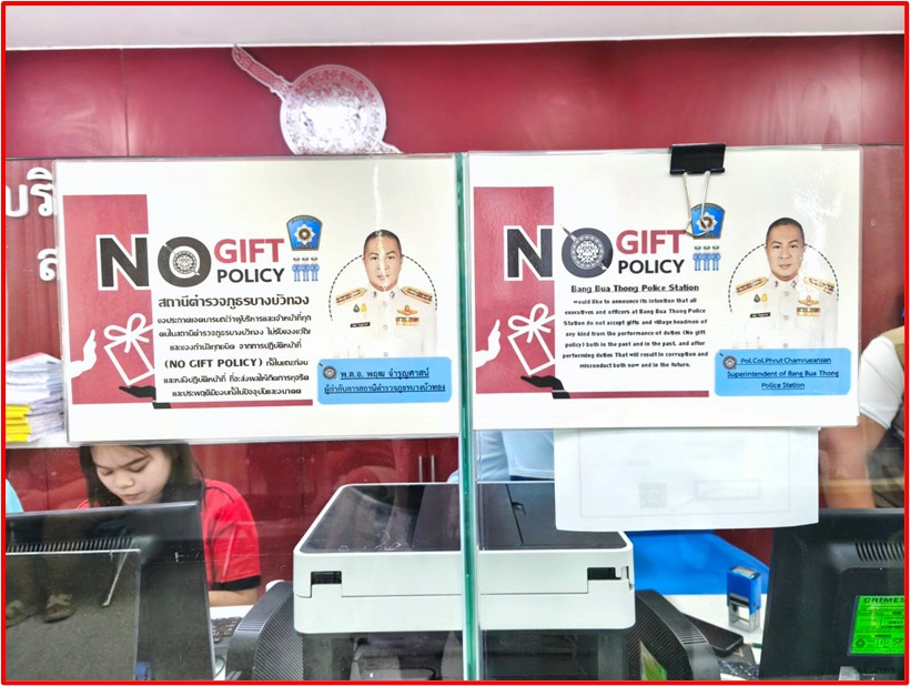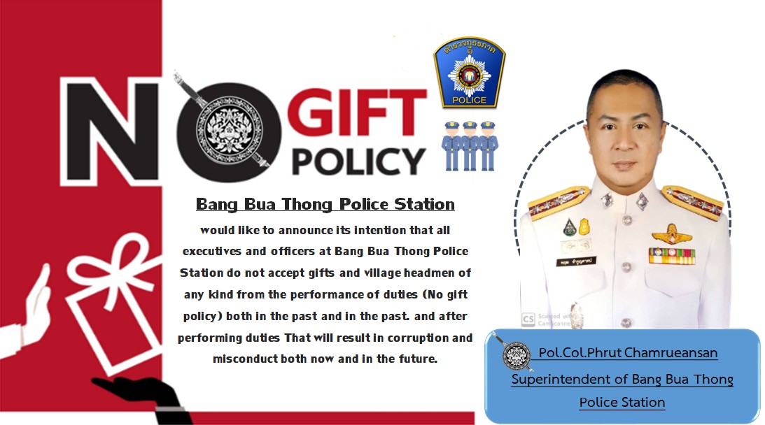 Announcement of Bang Bua Thong Provincial Police Station Subject: Intention to not accept any kind of gifts from performing duties