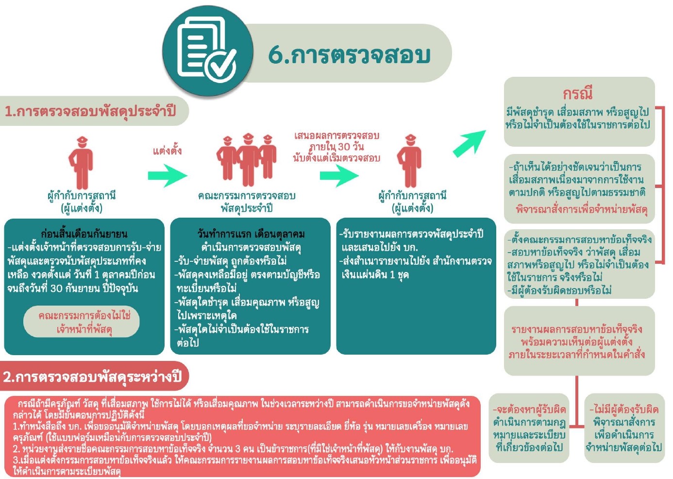 กำหนดแนวทางควบคุม กำกับดูแลรักษา ตรวจนับ ตรวจสอบสภาพการใช้งานทรัพย์สินของราชการ ของบริจาคโดยเฉพาะทรัพย์ประเภทที่มีความเสี่ยงในการนำไปใช้โดยมิชอบ