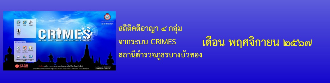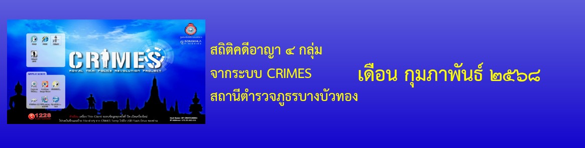 ข้อมูลผลการดำเนินงานในเชิงสถิติด้านคดีอาญา 4 กลุ่ม ตามระบบ CRIMES